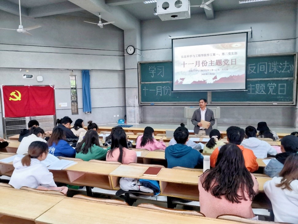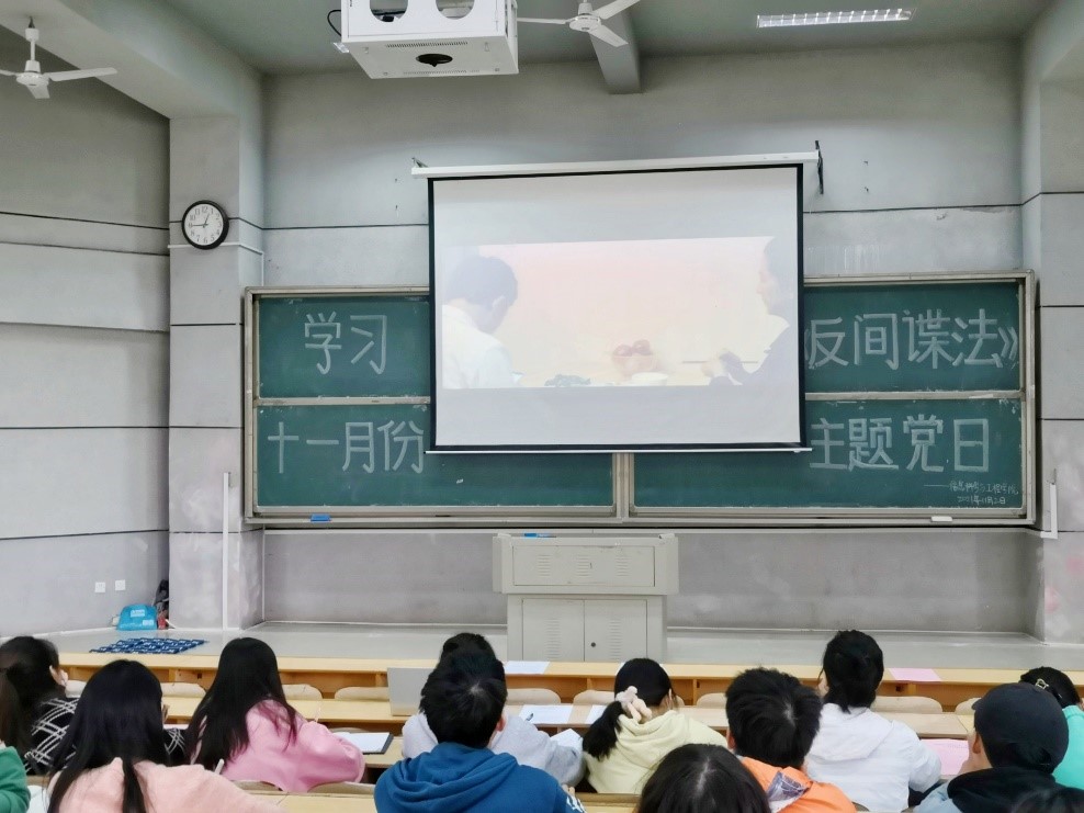 2021年11月2日,我院学工第一、第二党支部开展了“学习反间谍法”主题党日活动,学工第二党支部书记李荣敬老师,学工办叶晶老师和全体学生党员共同学习了《国家安全部有关负责人就<反间谍安全防范工作规定>答记者问》文件并观看了《微信陷阱》、《守护国家安全:请记住这个号码,12339》视频。此次主题党日旨在积极响应反间谍法颁布实施七周年纪念日,促使党员们在此次学习中认识到反间谍法是我国国家安全法律制度体系的重要组成部分,更加明确反间谍的必要性和国家安全的重要性。